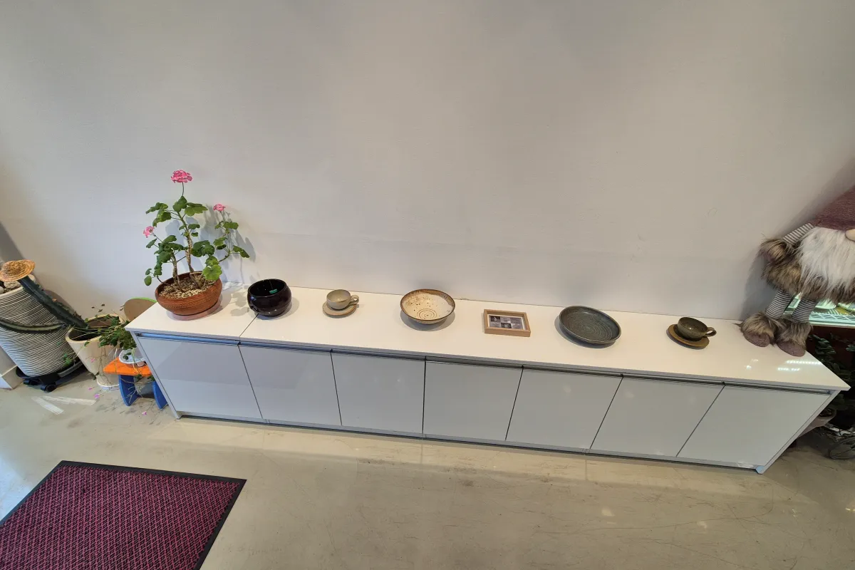 카페 내부는 이렇게 깔끔한 화이트 톤 베이스에 고급스러운 무드도 묻어나는 디자인입니다.