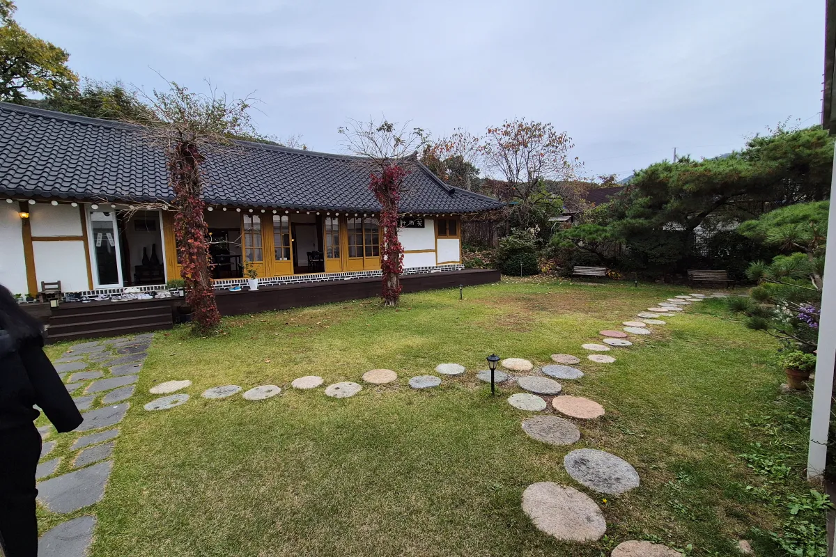 건물 뒤에 마당으로 나가시면 이렇게 한옥 건물이 있고 사이에 넓은 마당이 있습니다.